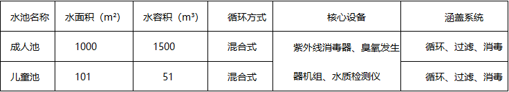 • 成人池:水面面积 1000㎡,水容积 1500m³